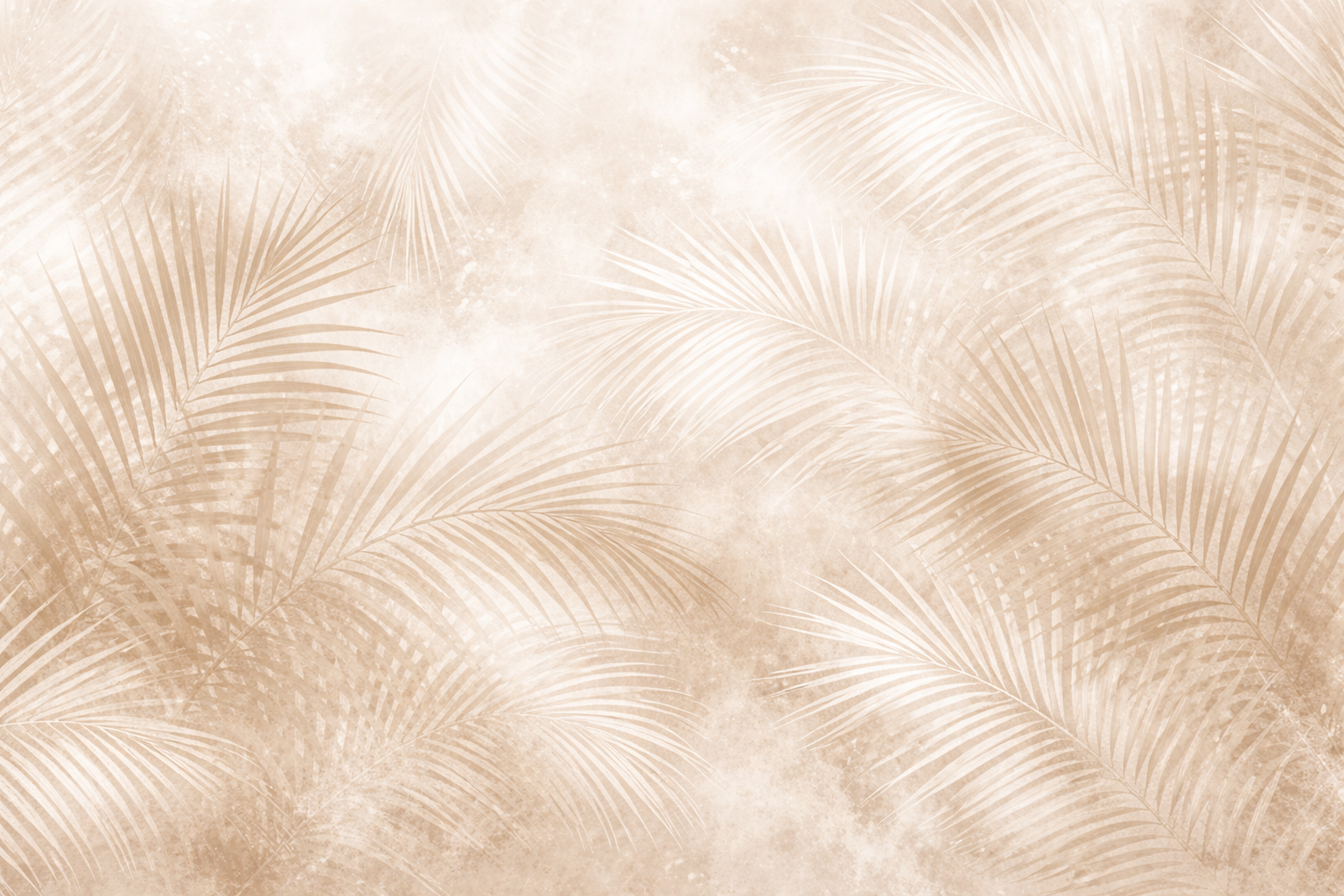 Fototapeta Golden Palm Serenity to wyjątkowa dekoracja ścienna inspirowana subtelnym pięknem tropikalnych liści palmowych. Delikatne, przenikające się wzory liści w ciepłych odcieniach beżu, piasku i złamanej bieli tworzą elegancką kompozycję, która wprowadza do wnętrza spokój, naturalność i ponadczasowy styl.