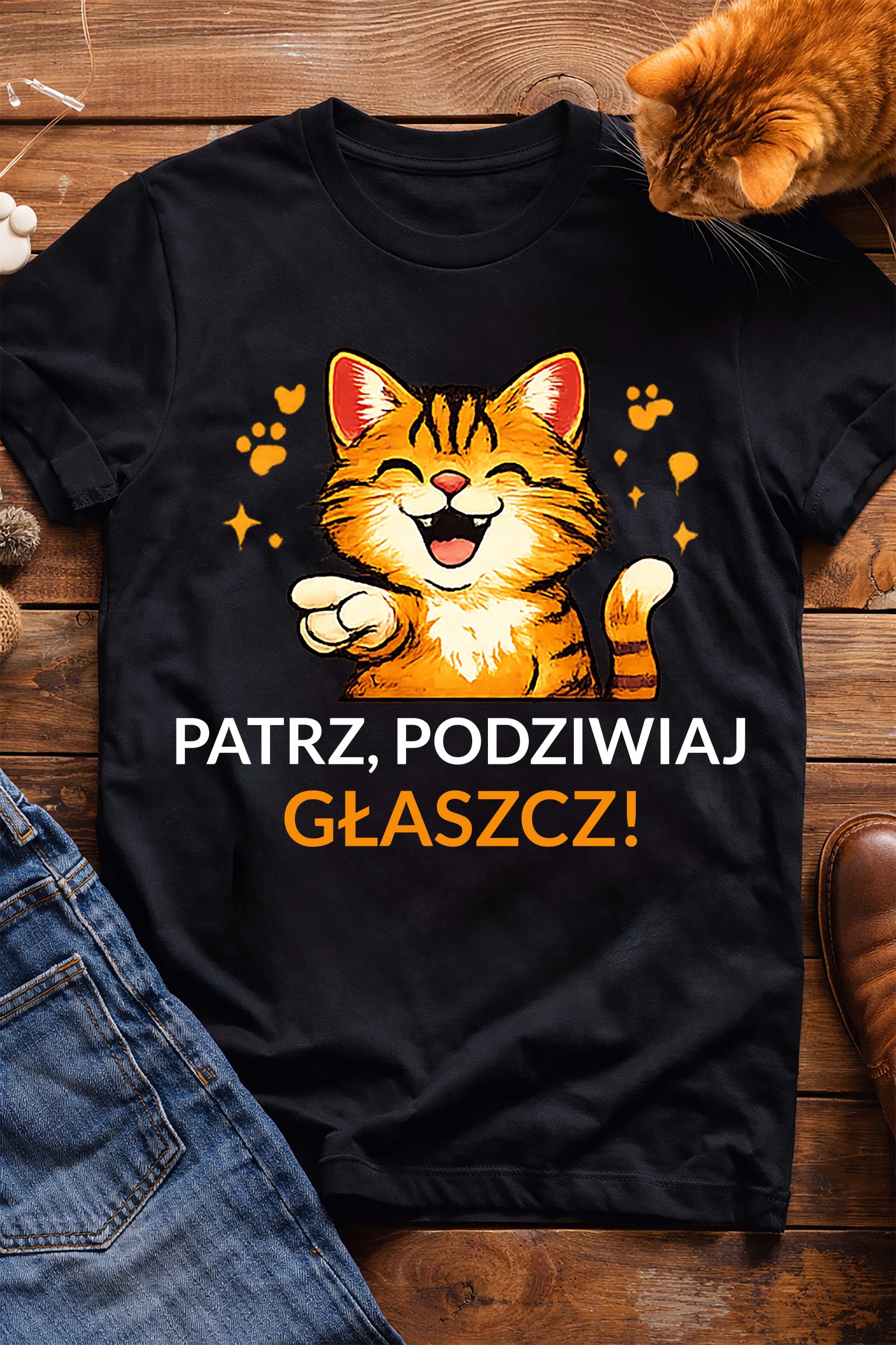 Koszulka dostępna jest w trzech wariantach: damskim, męskim oraz dziecięcym, dzięki czemu może stać się elementem rodzinnego zestawu dla fanów kotów. Czarny kolor koszulki podkreśla kontrast nadruku i sprawia, że grafika kota oraz napis są doskonale widoczne. Czarna koszulka z kotem to klasyka, która pasuje do wielu stylizacji i nigdy nie wychodzi z mody.