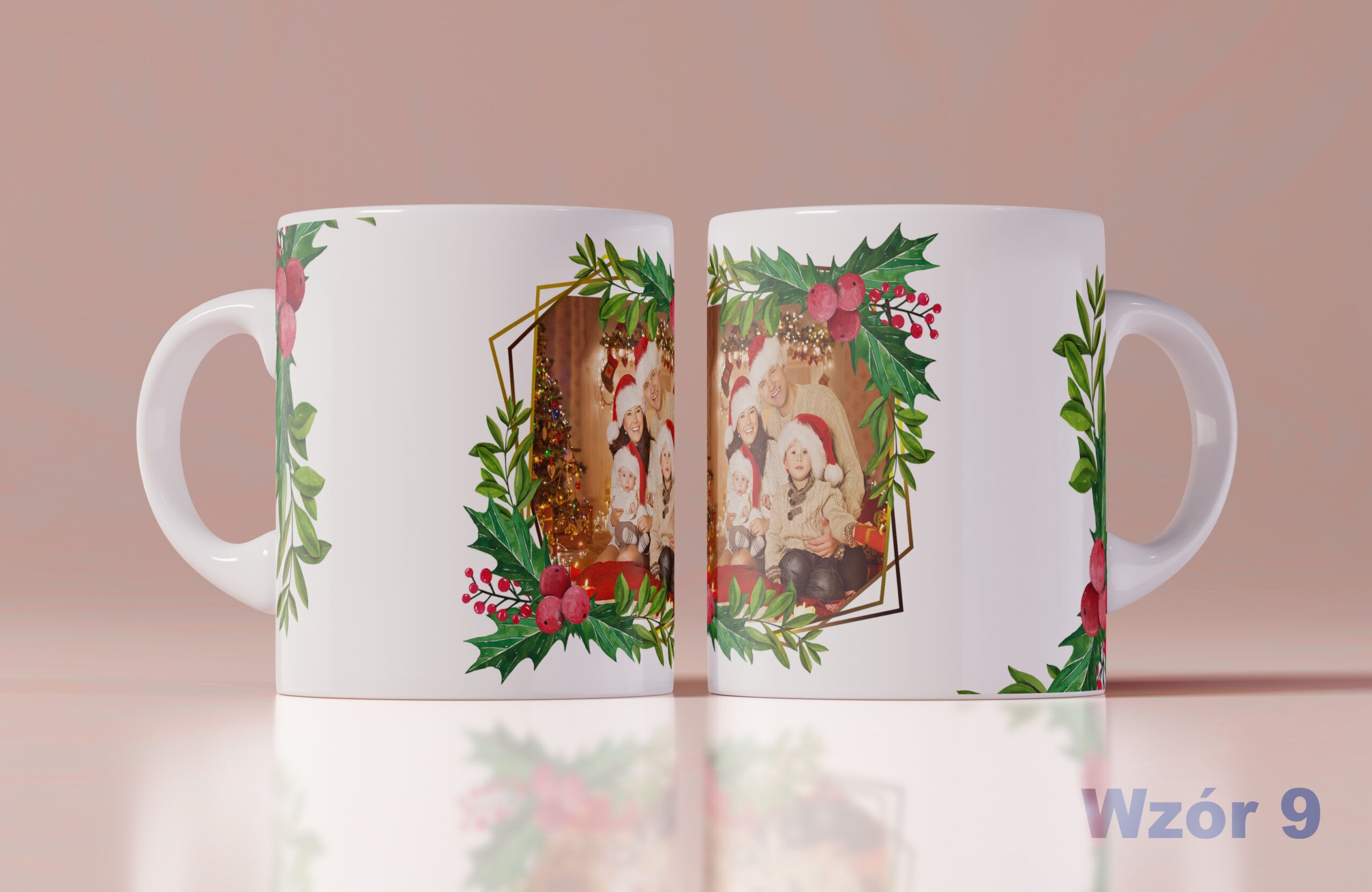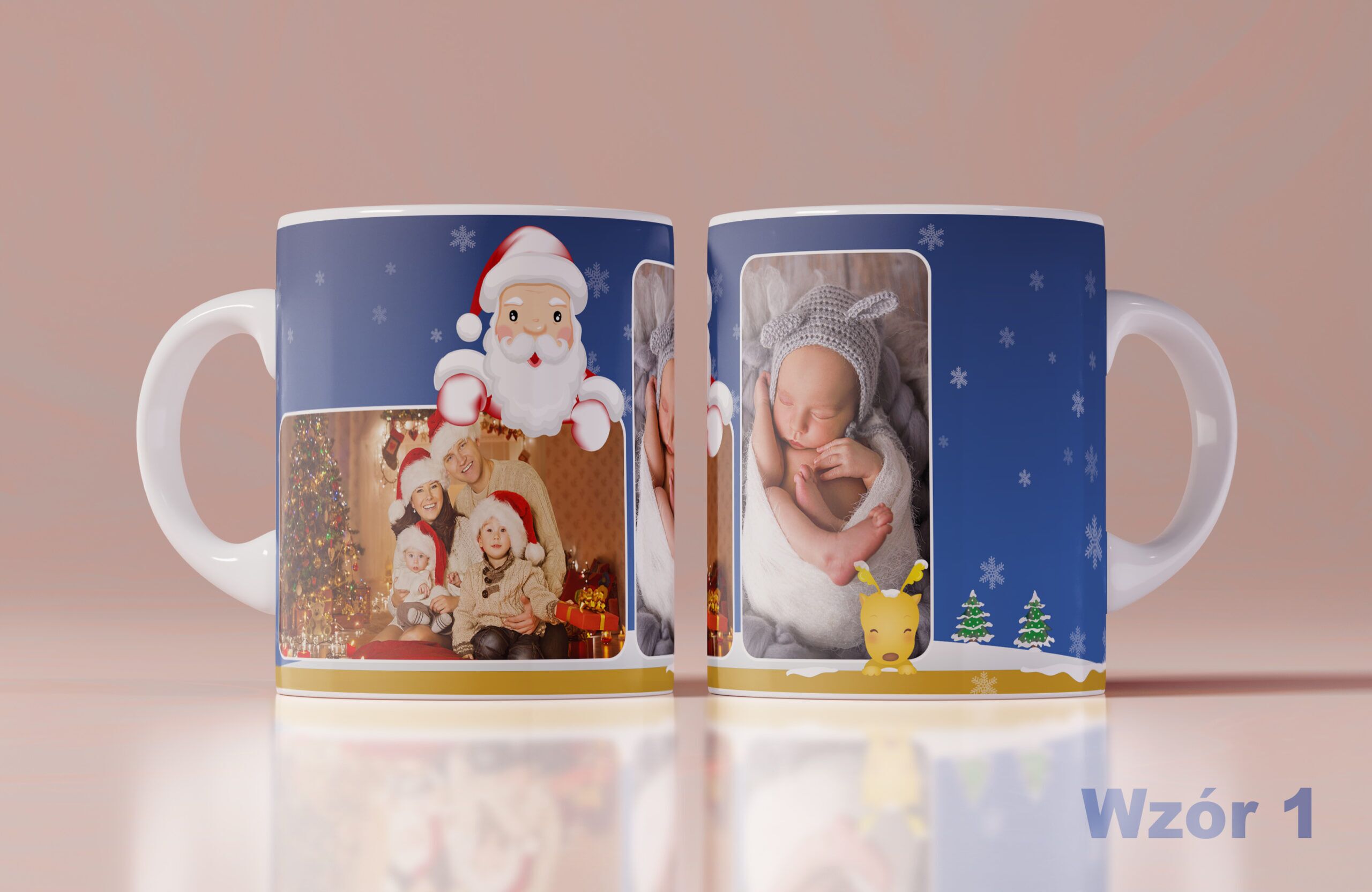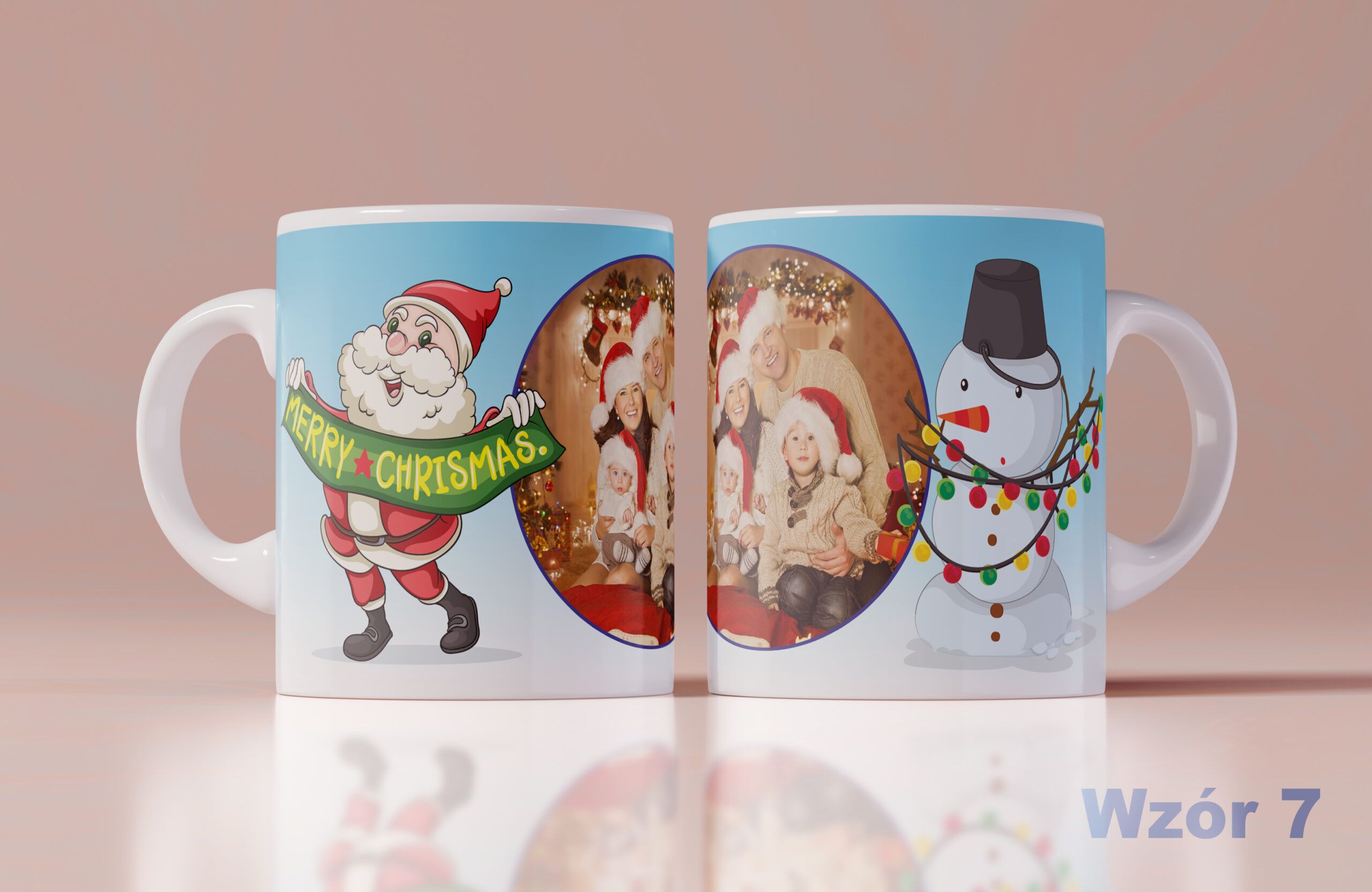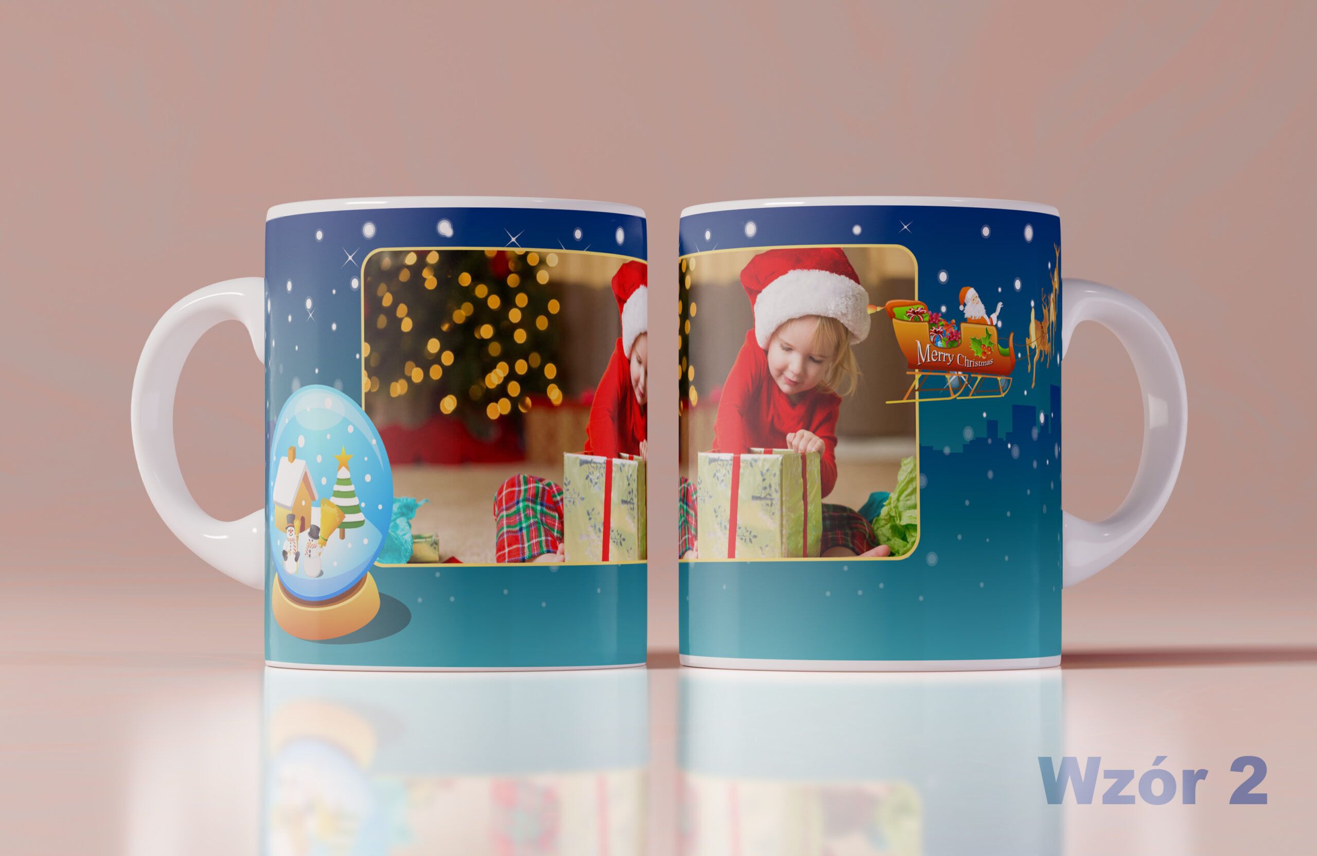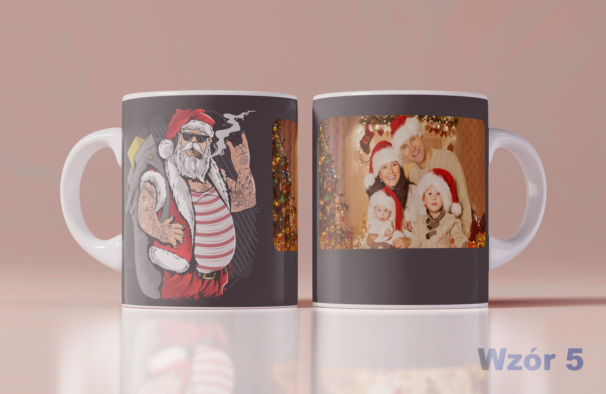 Biały kubek ceramiczny z nadrukiem w technologii sublimacjii. Wybierz świąteczny szablon, dołącz swoje zdjęcie. HoHoHo