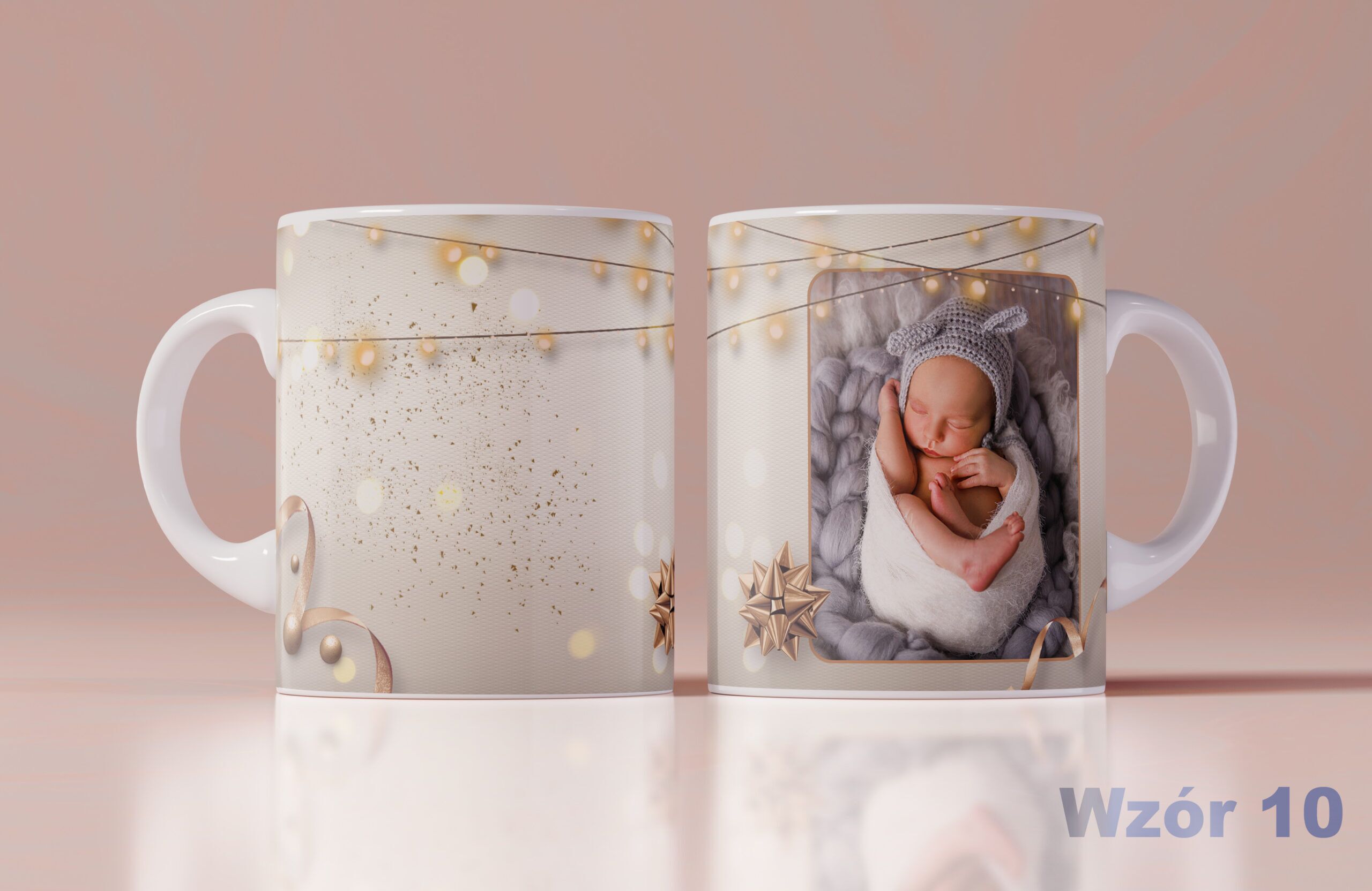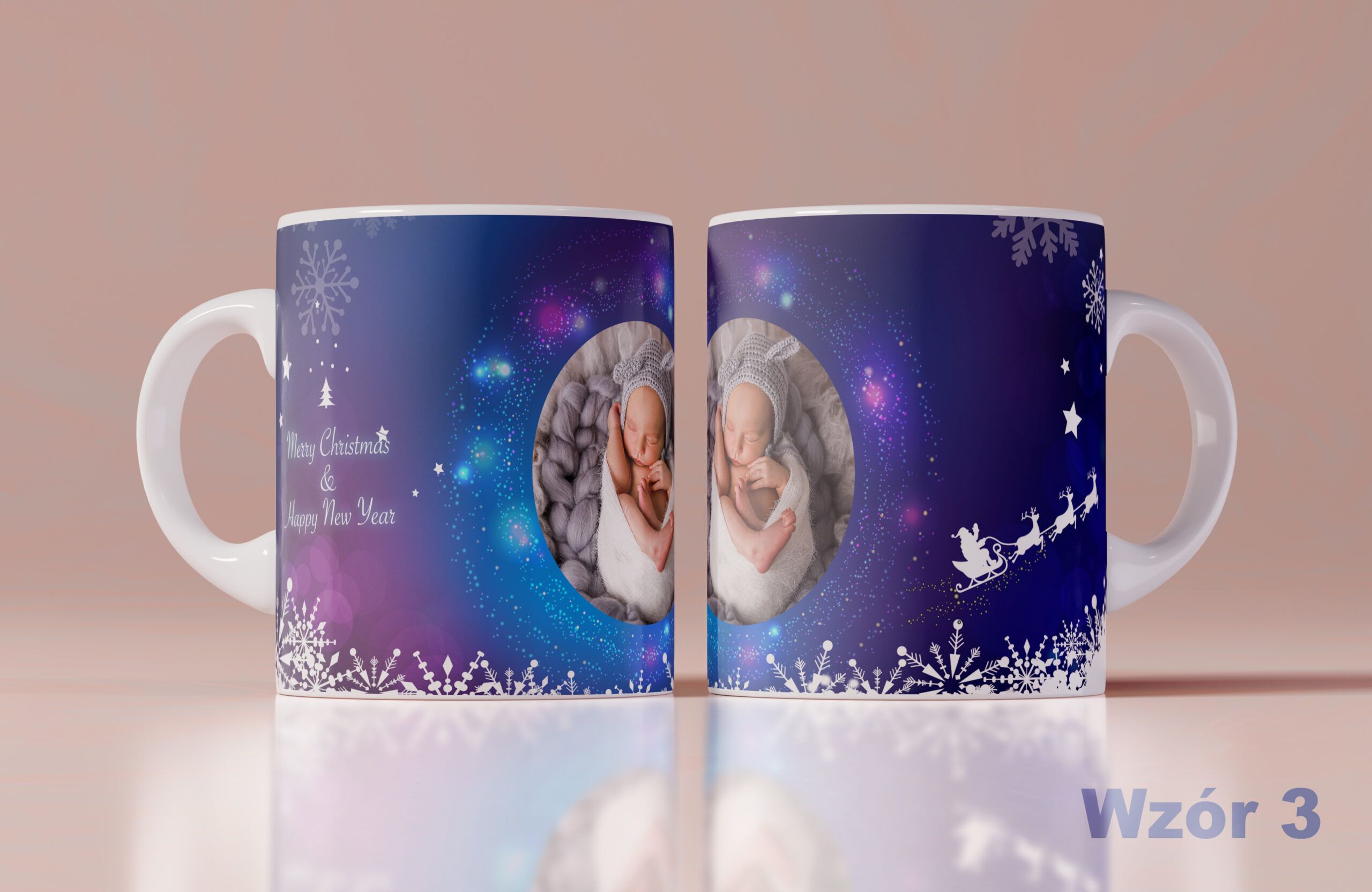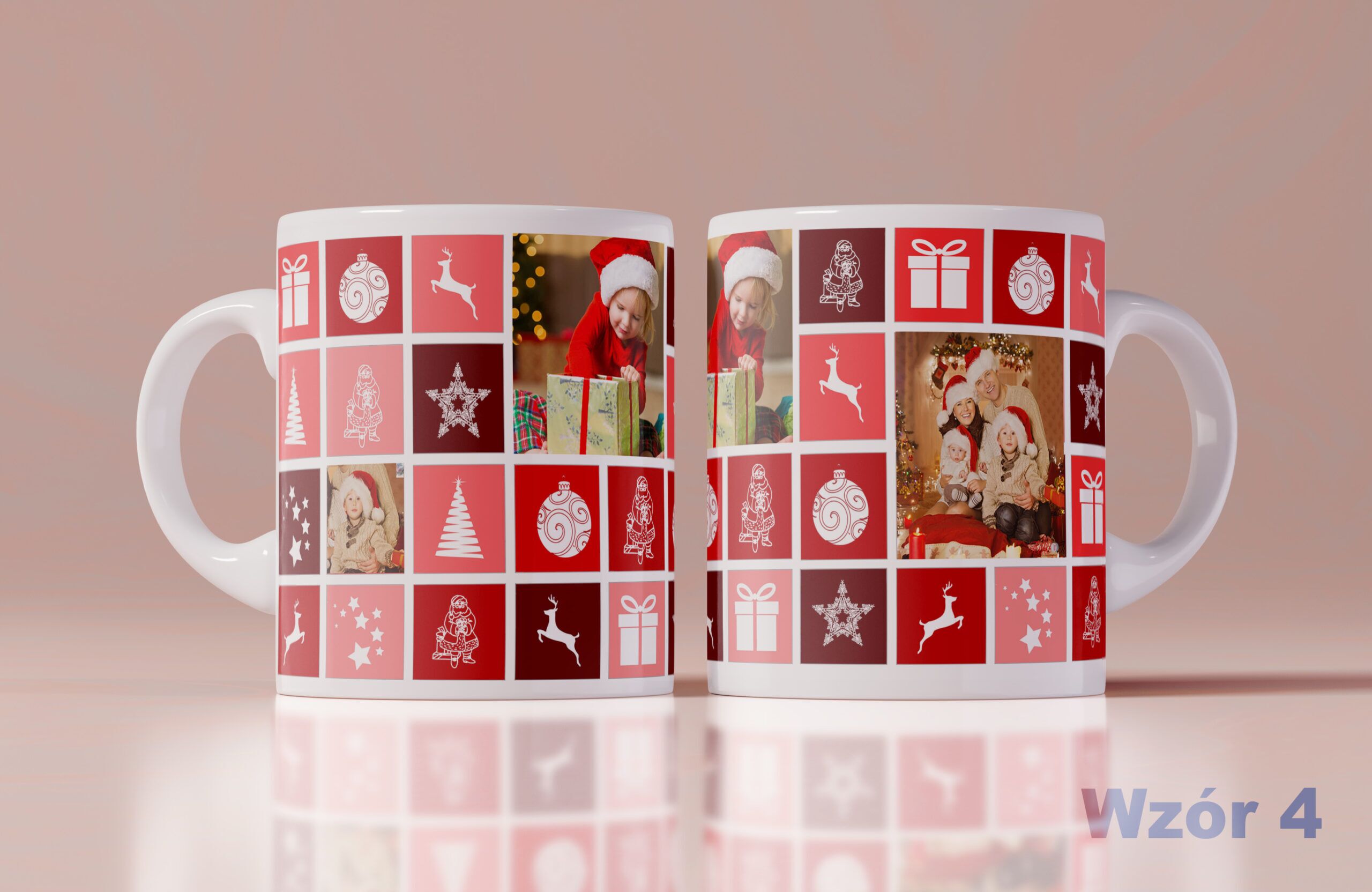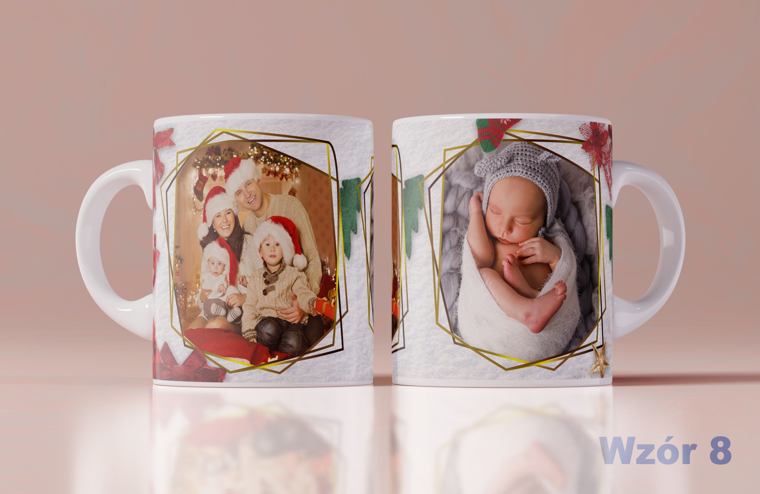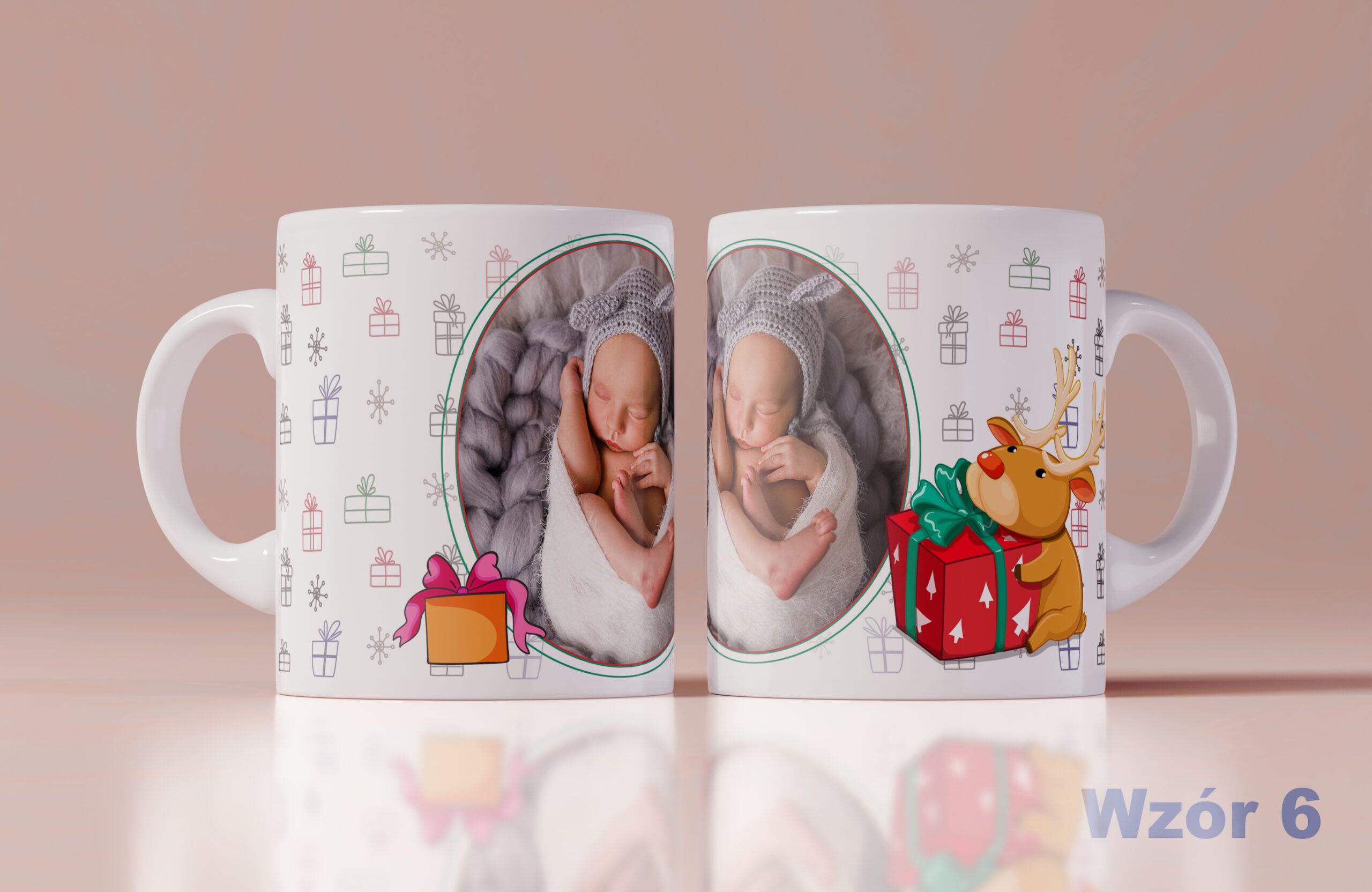 Biały kubek ceramiczny z nadrukiem w technologii sublimacjii. Wybierz świąteczny szablon, dołącz swoje zdjęcie. HoHoHo