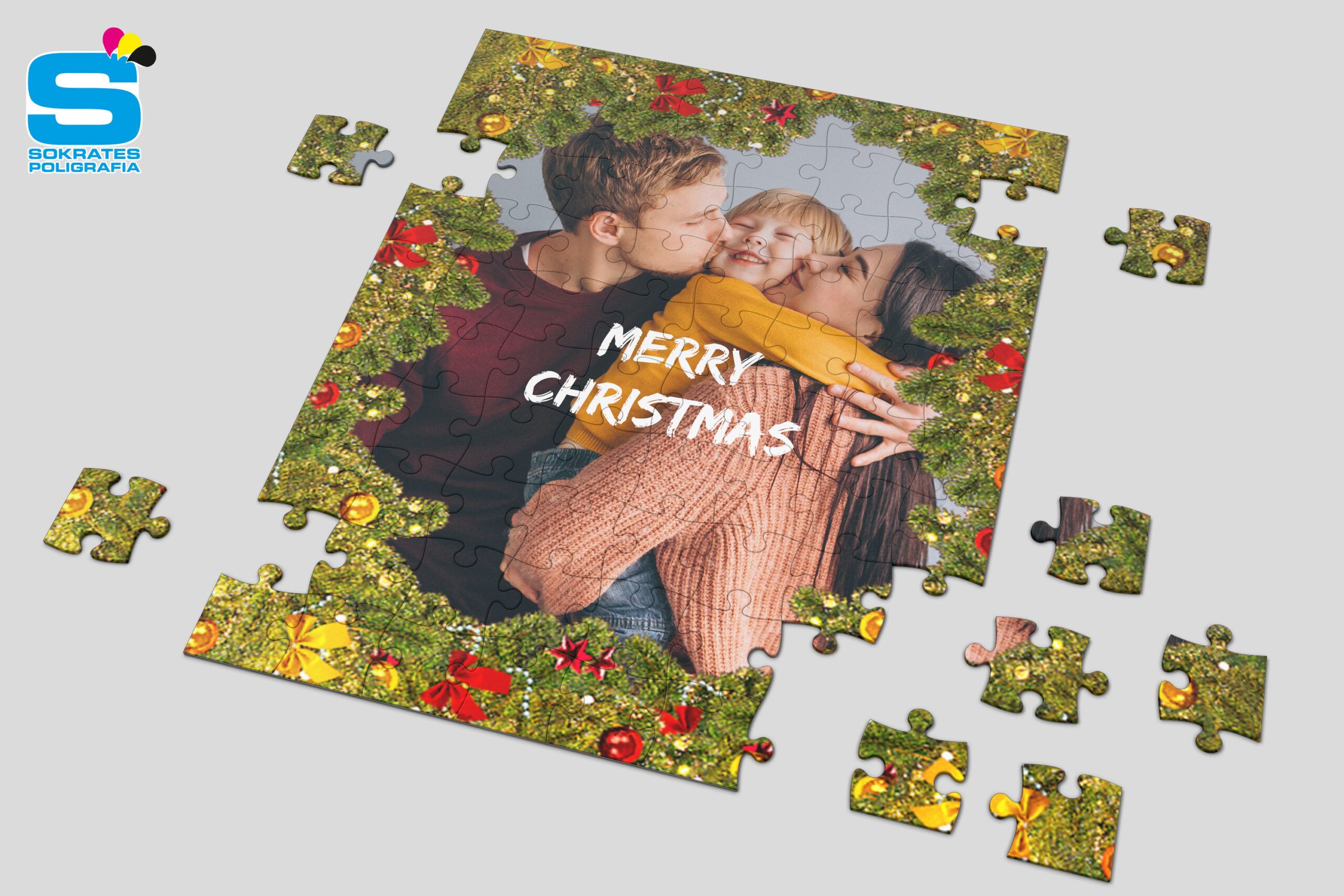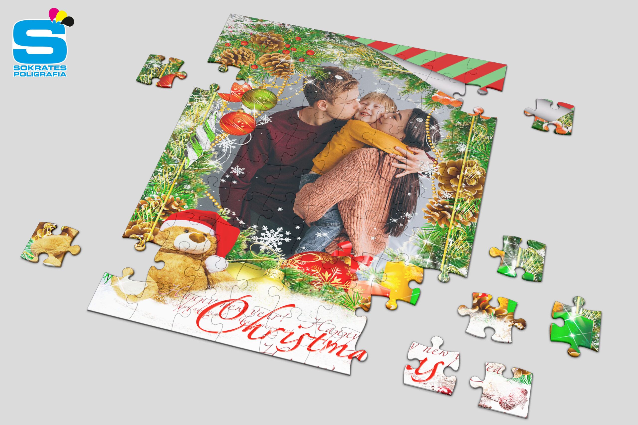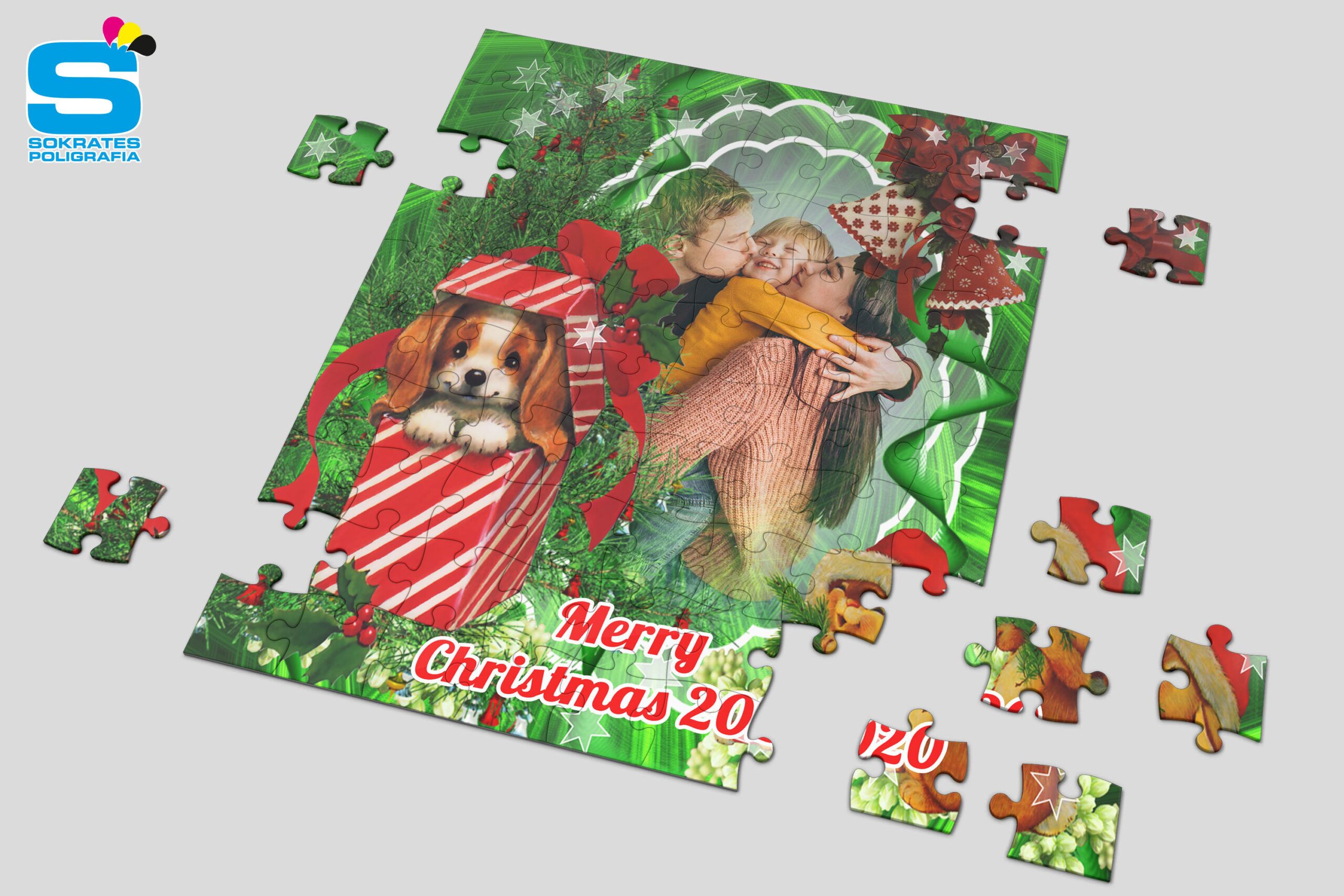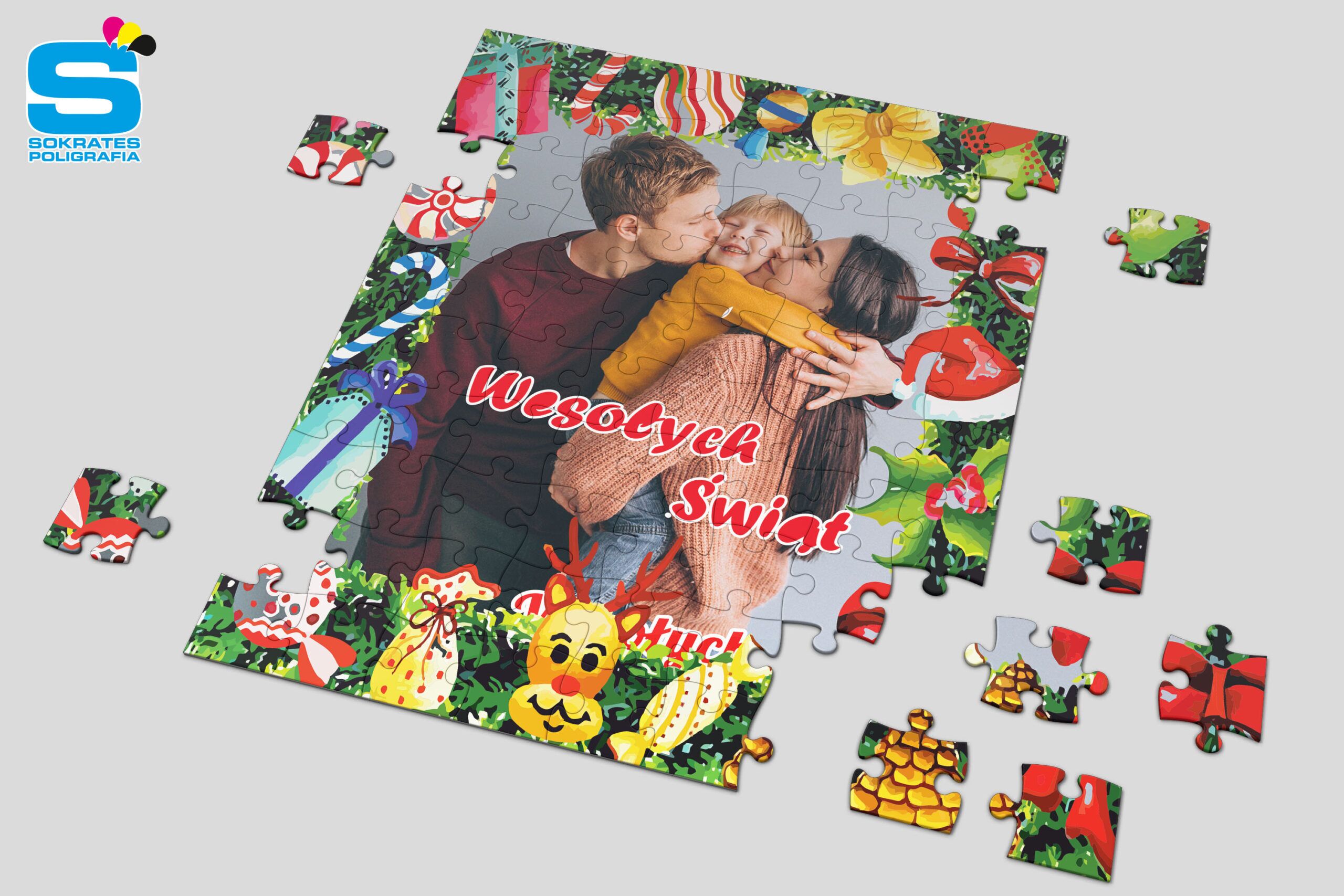 Puzzle świąteczne z nadrukiem w technologii sublimacjii. Wybierz świąteczny szablon, dołącz swoje zdjęcie. HoHoHo