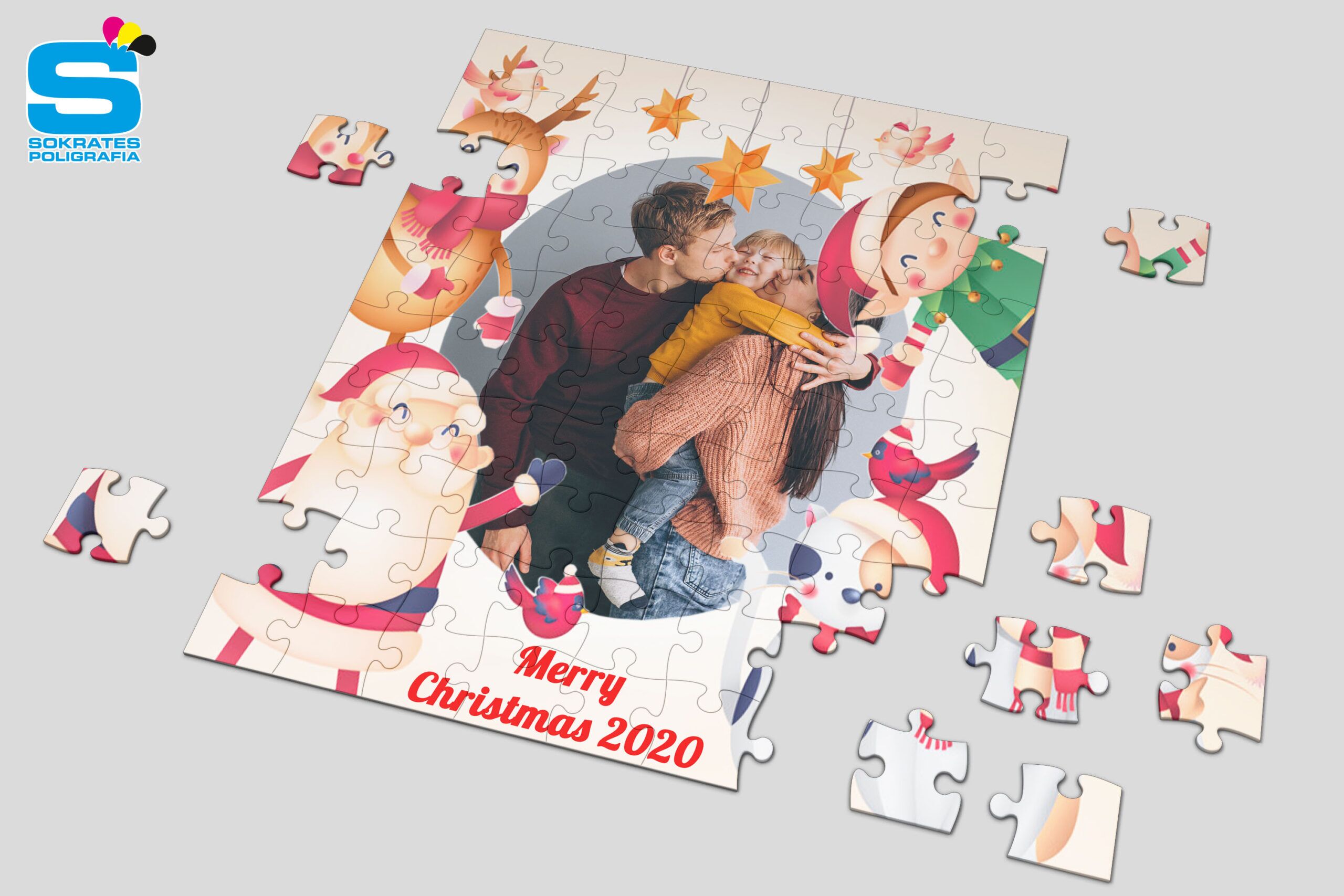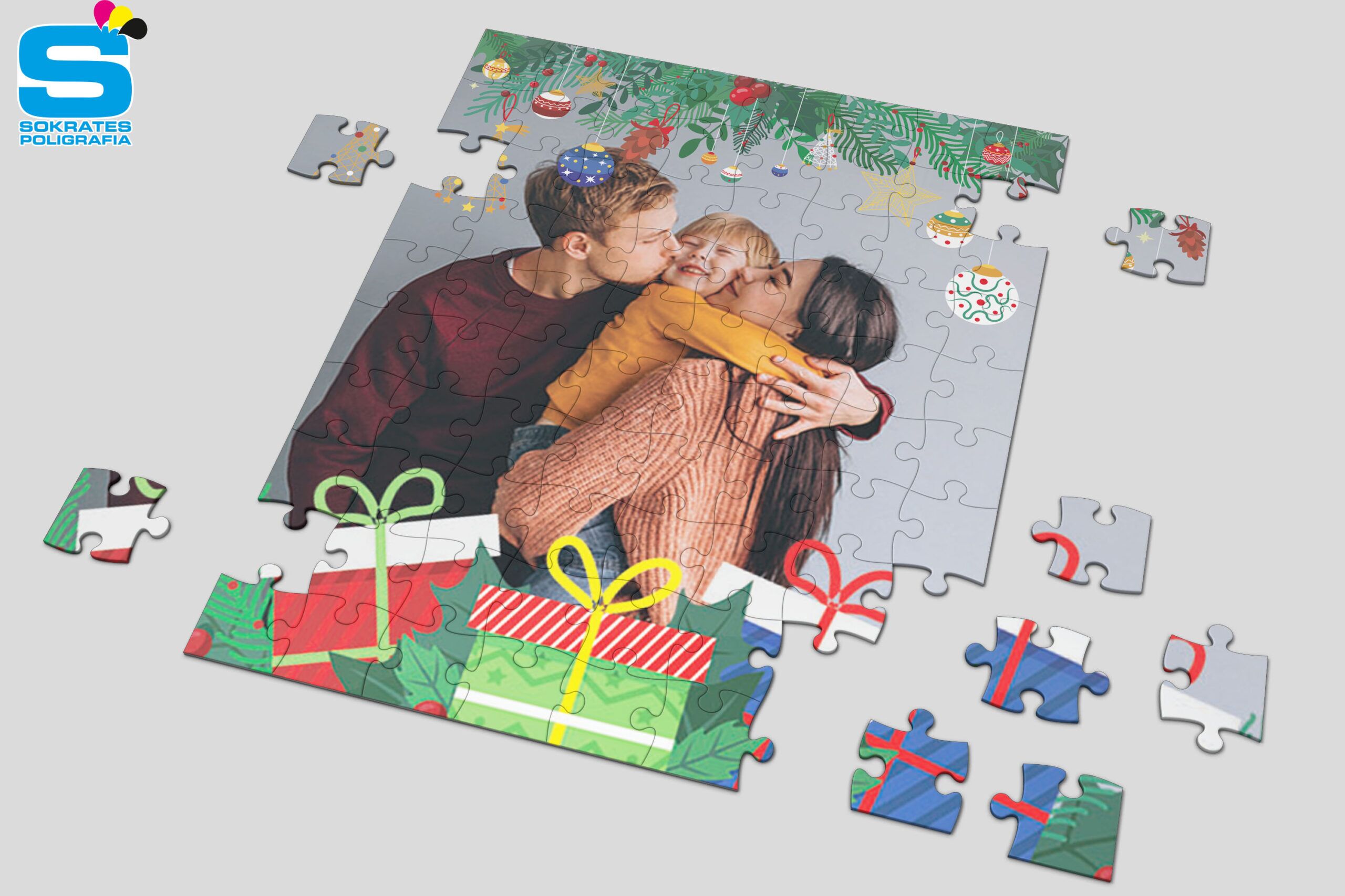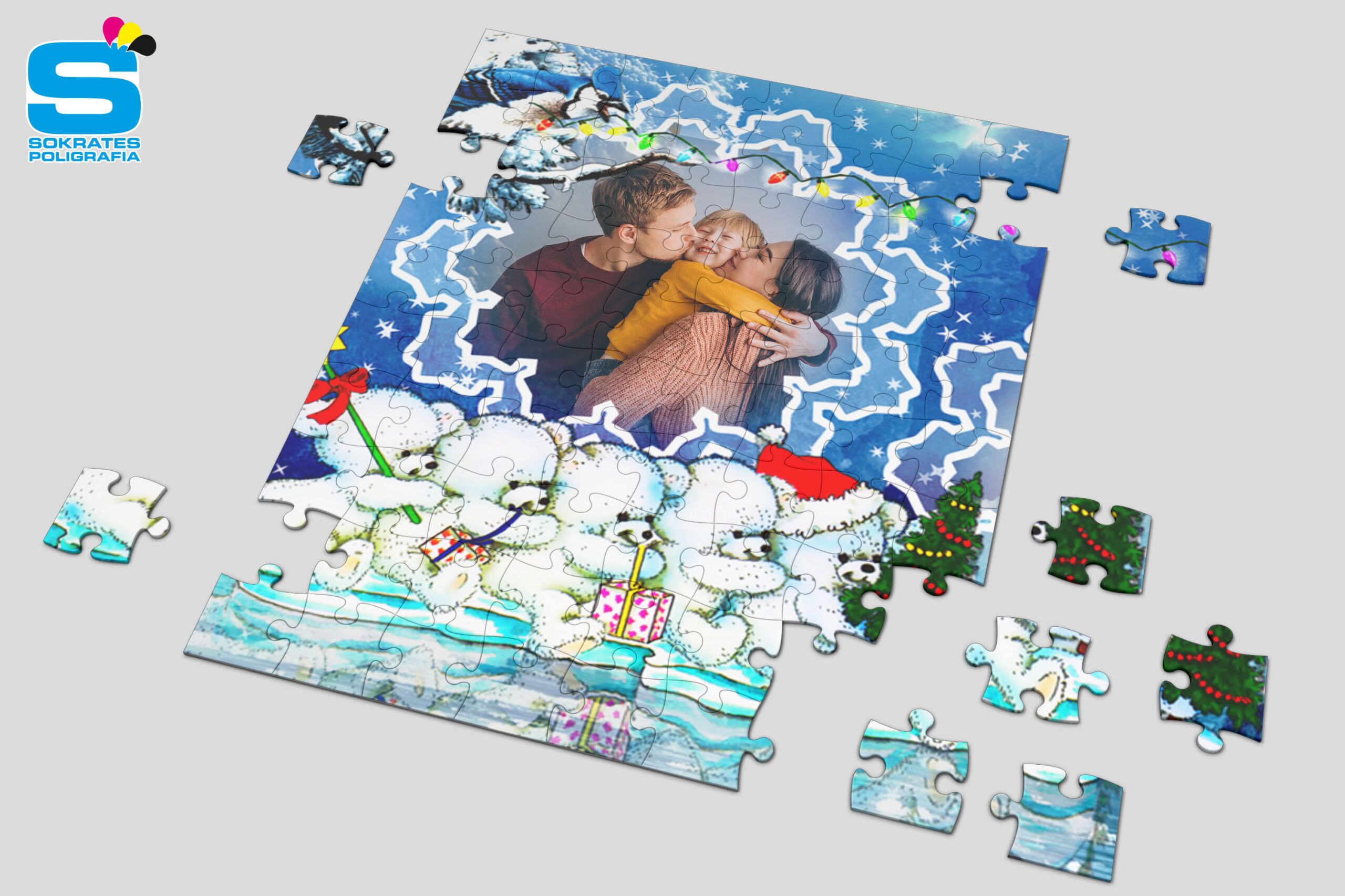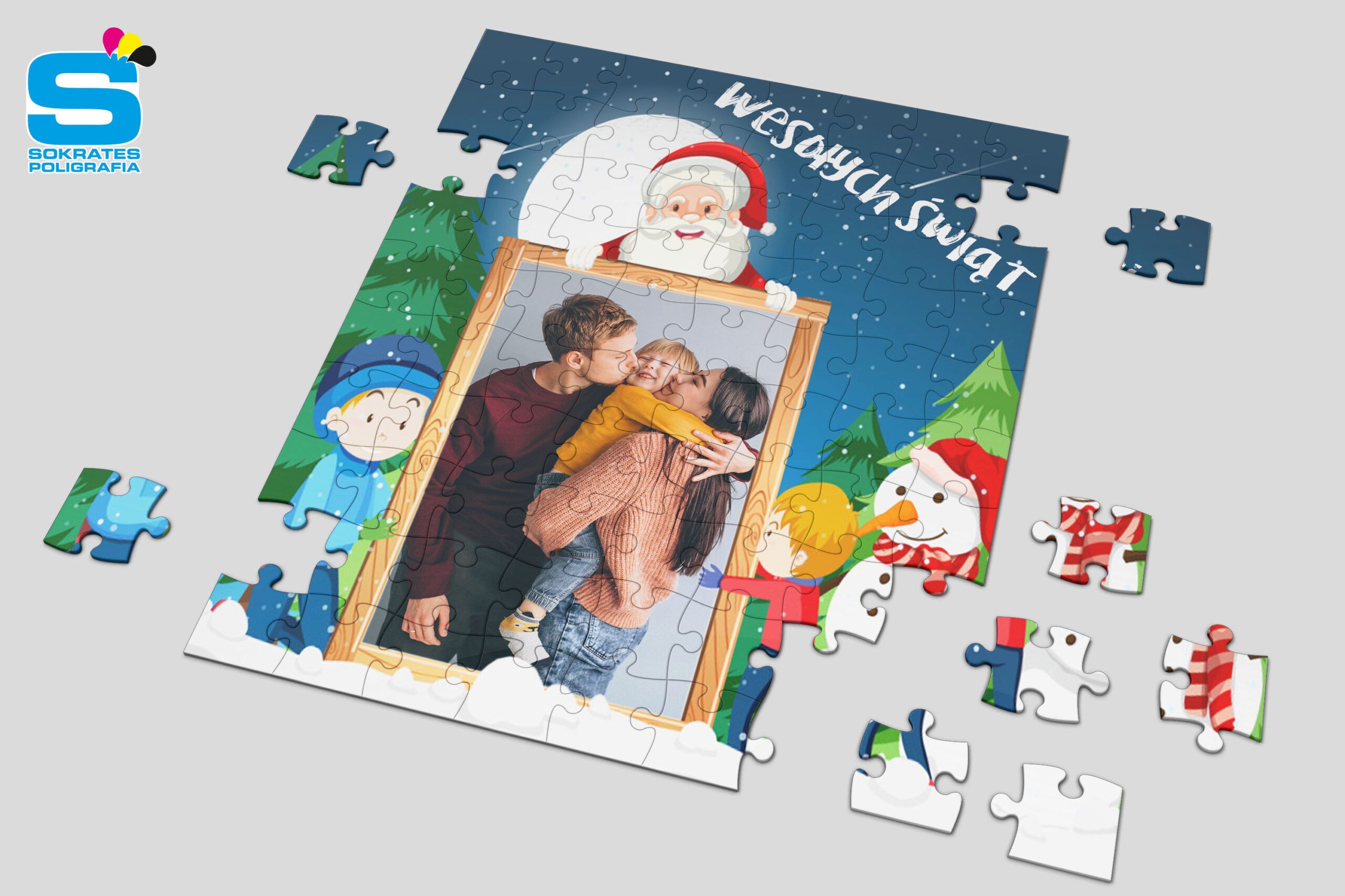 Puzzle świąteczne z nadrukiem w technologii sublimacjii. Wybierz świąteczny szablon, dołącz swoje zdjęcie. HoHoHo